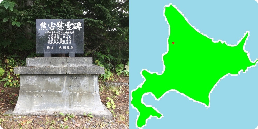 この雪崩による遭難者の慰霊碑は道道94号線沿いの小高い丘の上から集落跡を見下ろすように建っています。
